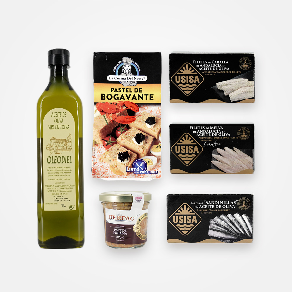 Ideal para regalar con productos auténticos de clase gourmet como son las conservas Usisa y el aceite de oliva Oleodiel.